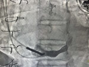U pacjenta po licznych interwencjach wieńcowych, z oporną na leczenia farmakologiczne dławicą piersiową, przeprowadzono w znieczuleniu miejscowym skuteczny zabieg wszczepienia reduktora przepływu w zatoce wieńcowej.