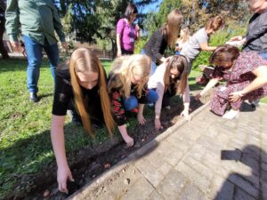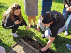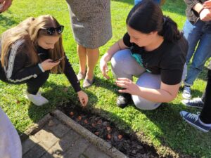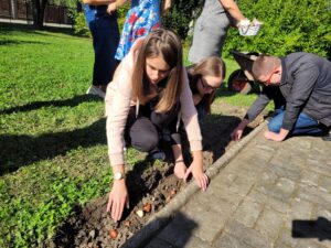 Uczniowie sandomierskiej Marmolady posadzili w szkolnym ogrodzie 76 tulipanów. To symboliczny gest na 76-lecie szkoły.