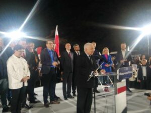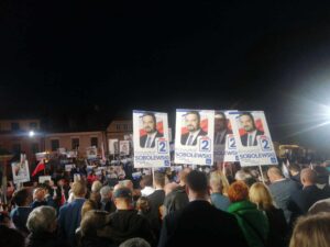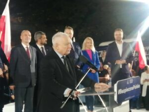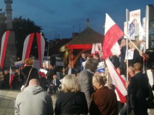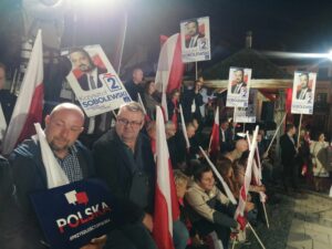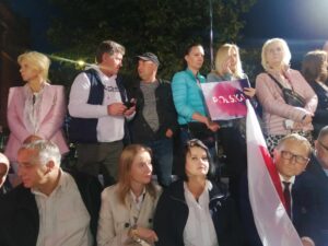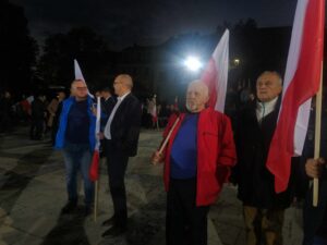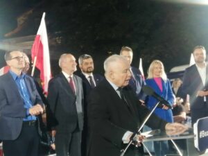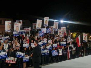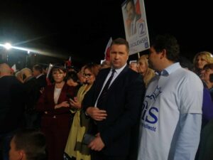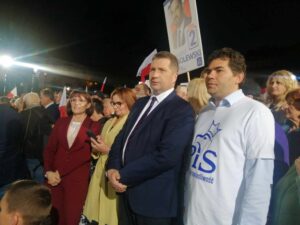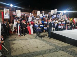 Na wiec do Sandomierza przyjechali między innymi minister obrony Mariusz Błaszczak, wiceminister sportu Anna Krupka, minister edukacji Przemysław Czarnek, świętokrzyscy parlamentarzyści oraz prezydent Stalowej Woli Lucjusz Nadbereżny.