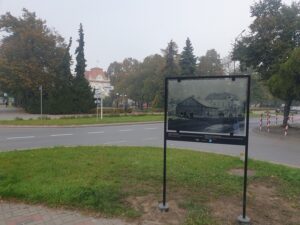Cztery szklane tablice osadzone na metalowych konstrukcjach stanęły w kilku miejscach Tarnobrzega. Przedstawiają miasto sprzed lat: Tarnobrzeski Rynek z widokiem na kościół oo. Dominikanów, synagogę, Zamek Tarnowskich w Dzikowie sprzed pożaru oraz drukarnię, pocztę i zakład fotograficzny.