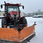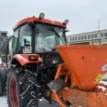 Dziś w związku z opadami śniegu po raz pierwszy w tym sezonie wyjechały trzy pługopiaskarki oraz trzy ciągniki.