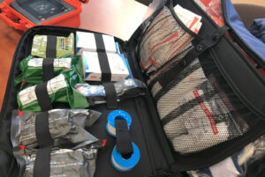 Oprócz sprzętu ratującego życie jakim jest defibrylator (potocznie AED, czyli urządzenie wykorzystywane podczas zatrzymania krążenia) torby są wyposażone w opatrunki do zabezpieczania ran, opatrunki żelowe na oparzenia i kołnierze ortopedyczne stabilizujące odcinek szyjny podczas urazów, szyny do unieruchamiania kończyn przy złamaniach, rurki do udrażniana dróg oddechowych, środki dezynfekcyjne, rękawice czy folie termiczne.