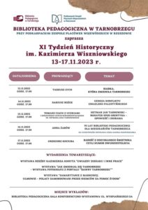 Jedenasty Tydzień Historyczny imienia Kazimierza Wiszniowskiego rozpocznie się w poniedziałek, 13 listopada w Bibliotece Pedagogicznej w Tarnobrzegu.