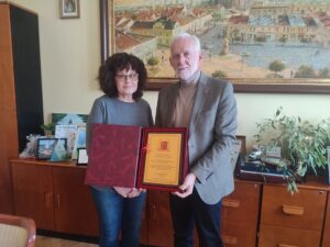 Spotkanie w Urzędzie Miasta Tarnobrzega u prezydenta Dariusza Bożka z córką Stanisławy Cepnik, Bożeną Tarkowską (zdj. UM Tarnobrzega)