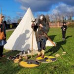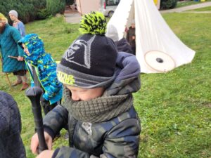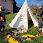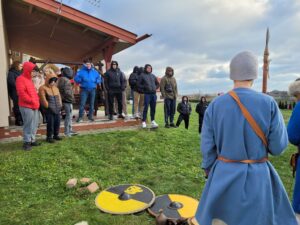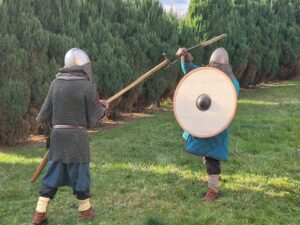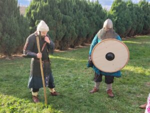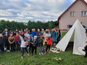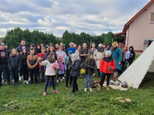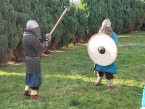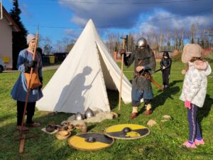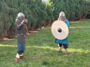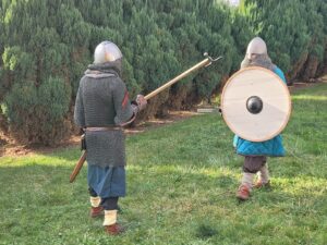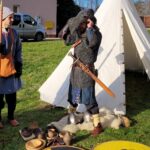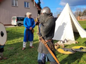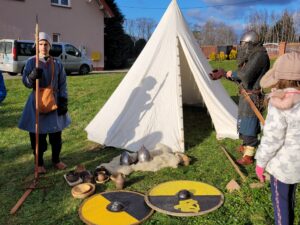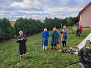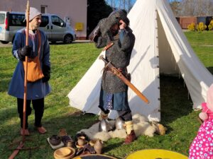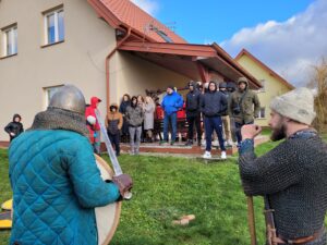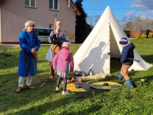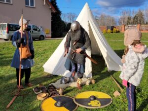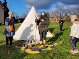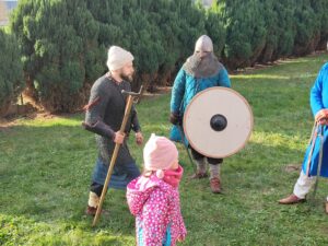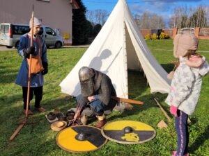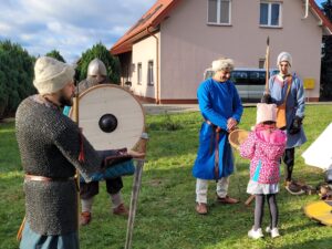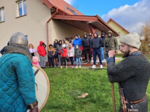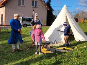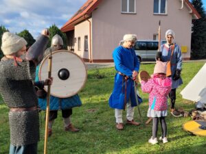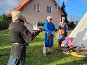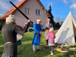 Pierwszym punktem wizyty w domu dziecka był pokaz wczesnośredniowiecznej drużyny najemnej „Kobuz” tworzonej przez mieszkańców Stalowej Woli, Niska i Sandomierza.