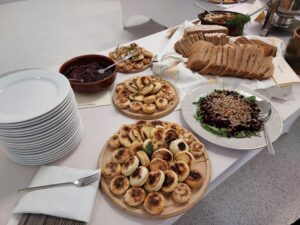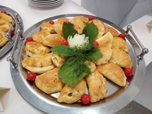 Był także barszcz czerwony na burakach z Ziemi Sandomierskiej oraz pieczone z ciasta krucho-drożdżowego pierogi.