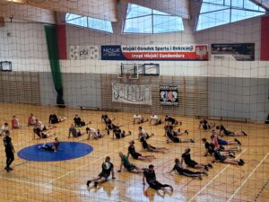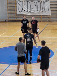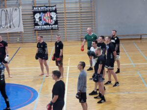 Już w nowych fryzurach młodzi fani sportu zasiedli na trybunach sandomierskiej hali, by oglądać trening prowadzony przez zawodnika KSW Jacka „Siexę”: