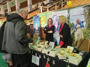 Zwiedzający targi mogli podczas wydarzenia uczestniczyć w spotkaniu z sandomierzaninem, autorem kryminałów Michałem Śmielakiem.