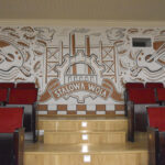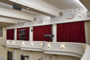 Bardzo ważnym elementem na sali widowiskowej jest sufit z mnóstwem wyżłobionych linii