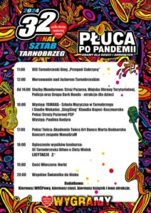 O godzinie 11.00 na terenach zielonych nad Wisłą wystartuje Bieg „Przegoń cukier” organizowany przez Sztab WOŚP i Klub Sportowy Harpagan. W tym samym czasie Tarnobrzeskie Stowarzyszenie Inicjatyw Artystycznych FRAM zaprasza do Wozowni w parku dzikowskim. Tam rozpocznie się cykl pokazów. Swoje umiejętności zaprezentują między innymi przedstawiciele Tarnobrzeskiej Szkoły Tai Chi. W południe nad Jeziorem Tarnobrzeskim morsowanie z BodyMors Tarnobrzeg, a o 16.00 w Klubie Fitneska – II Zabawa Karnawałowa Fluo Party. To nie wszystko. Impreza główna odbędzie się na Placu Bartosza Głowackiego. Start o godzinie 14.00.