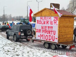 Rolnicy w całym kraju wyjechali dziś swoimi ciągnikami na ulice aby zaprotestować przeciwko napływowi płodów rolnych spoza Unii Europejskiej oraz unijnej polityce „Zielonego Ładu”. Ich protest wiąże się z blokadą wielu ważnych dróg. Tak jest między innymi w Sandomierzu, gdzie na demonstrację zjechało dziś ponad 300 ciągników.