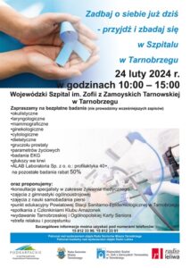 Hasło akcji brzmi „Zadbaj o siebie już dziś – przyjdź i zbadaj się w Szpitalu w Tarnobrzegu”. Patronat medialny Radio Leliwa.