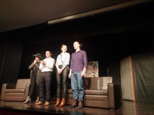 W sztuce „Psycho-tera-polityka” Dominika W. Rettingera występują:Agata Szymańska, Maja Brzeska, Marcin Raś i Mateusz Załuska.