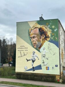 195 m2 powierzchni, ponad 95 litrów farb i 2m kwadratowe elementów ceramicznych – to wszystko złożyło się na mural Grzegorza Lato, który powstał w Mielcu przy ulicy Kusocińskiego z okazji 50. rocznicy zdobycia przez polskich reprezentantów brązowego medalu na Mistrzostwach Świata w Niemczech. Duży udział w tym sukcesie miał właśnie Lato, który został królem strzelców tego turnieju.
