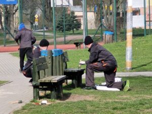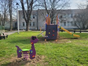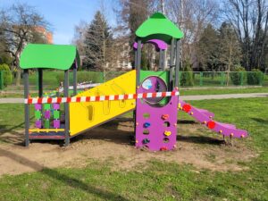 Stare elementy placu zabaw zostały odświeżone i pomalowane, aby przygotować je do kolejnego sezonu.