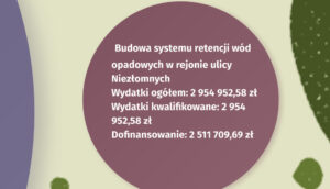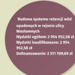 Wybudowane też zostaną dwa podziemne zbiorniki retencyjne pod ulicą Niezłomnych za ponad 2,9 miliona z czego 2,5 miliona złotych to dofinansowanie .
