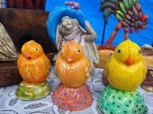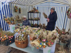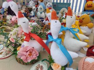 Na stoiskach można znaleźć artykuły i ozdoby, które kojarzą się ze zbliżającymi się świętami. Oczywiście nie zabrakło palm wielkanocnych, stroików, pisanek, baranków, serwetek, czy koszyczków.