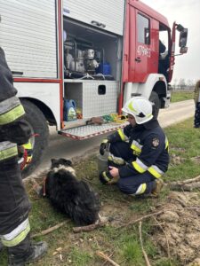 Dwie godziny trwała akcja ratowania psa uwięzionego w błocie w Trzebiesławicach. Na pomoc zwierzęciu ruszyli druhowie z OSP Łoniów. Zwierzę pogrążyło się w błocie na terenach podmokłych. Strażacy zabezpieczyli miejsce zdarzenia, wyciągnęli psa z grząskiego miejsca, udzielili mu pomocy i przekazali psa odpowiednim służbom.