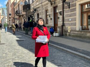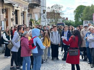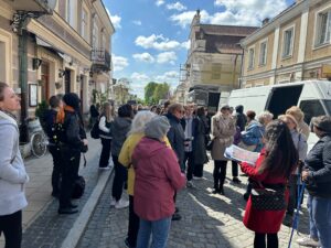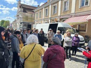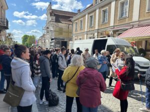 „Spacer sandomierskim szlakiem kultury żydowskiej” rozpoczął się o godzinie 11 na dziedzińcu Zamku Królewskiego w Sandomierzu. W tym roku frekwencja była wyjątkowo duża, bo na marsz zapisało się prawie 200 osób.