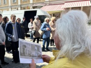 Spacer poprowadziła Karolina Gara, historyk i judaista. Trasa objęła najważniejsze zabytki, które pozostały po społeczności żydowskiej zamieszkującej niegdyś Sandomierz oraz miejsca, których nie ma już na mapie miasta, tj. mykwę czy budynek chederu. Na mapie spaceru była ulica Żydowska, gdzie znajdowała się synagoga, a potem utworzone przez Niemców getto.