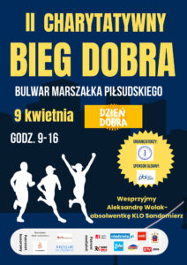 Bieg Dobra odbędzie się w najbliższy wtorek 9 kwietnia w godzinach od 9.00 do 16.00 na bulwarze im. marszałka Józefa Piłsudskiego w Sandomierzu.