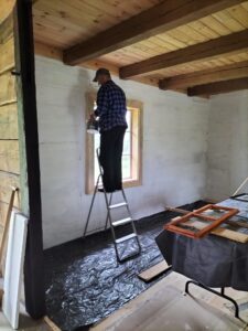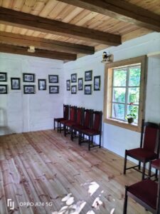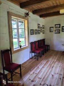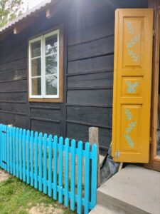 Na terenie parku „Pod Kogutem” pojawił się kolejny obiekt. To stara wiejska chata przeniesiona z innego miejsca i złożona na nowo, deska po desce w Dąbiu. Teraz rodzi się tu galeria sztuki ludowej: