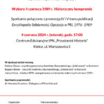 Panel dyskusyjny pt. „Wybory 4 czerwca 1989 r. Historyczny kompromis” odbędzie się w Centrum Edukacyjnym IPN „Przystanek Historia” w Kielcach we wtorek 4 czerwca 2024 roku o godzinie 17.00. Będzie on połączony z promocją IV i V tomu publikacji „Encyklopedia Solidarności. Opozycja w PRL 1976 – 1989”. Wstęp wolny.