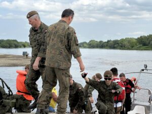 Na przeprawie promowej w Ciszycy nad Wisłą w gminie Koprzywnica odbywają się ćwiczenia zintegrowane specjalistycznych jednostek PSP, OSP i innych służb mundurowych z województw podkarpackiego i świętokrzyskiego w zakresie działań poszukiwawczych na wodzie.