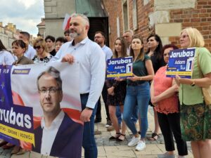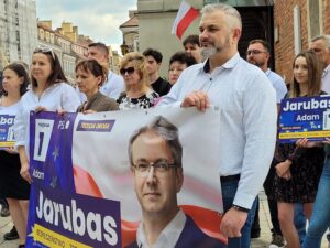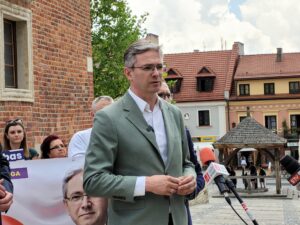 Wiceprezes PSL, europoseł Adam Jarubas, który kandyduje w najbliższych wyborach do Parlamentu Europejskiego z listy Trzeciej Drogi-PSL, podczas specjalnej konferencji na sandomierskiej starówce prezentował swój program wyborczy i zachęcał do udziału w wyborach do Europarlamentu. Towarzyszyli mu członkowie PSL, w tym starosta sandomierski Marcin Piwnik i burmistrz Paweł Niedźwiedź.