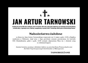Wolą rodziny Jana Artura Tarnowskiego jest, by nie przynosić wieńców i kwiatów, tylko złożyć datki na Dom Pomocy Społecznej w Mokrzyszowie prowadzony przez Siostry Służebniczki. Podopieczni DPS-u będą kwestować przed kościołem.