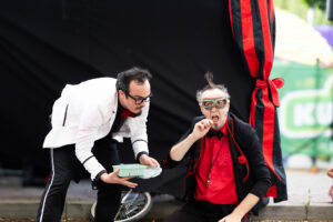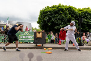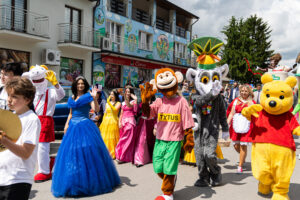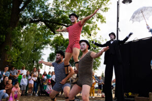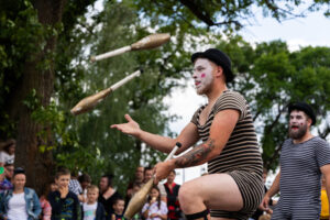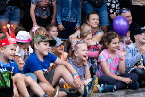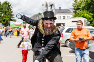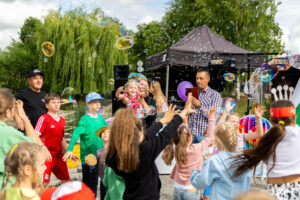 Festiwal Kultury Dziecięcej – Pacanów 2024 otworzył uroczysty przemarsz Bajkowego Korowodu ulicami Pacanowa w akompaniamencie Młodzieżowej Orkiestry Dętej z Pacanowa. Podczas wielkiego otwarcia Festiwalu Burmistrz Pacanowa przekazał władzę dzieciom, wręczając im symboliczny klucz do Pacanowa. Tuż po oficjalnym otwarciu Festiwalu rozpoczął się wyjątkowy program artystyczny. Tego dnia przed gośćmi wystąpiła Grupa Locomotora, która przeniosła wszystkich do Paryża lat 20 ubiegłego wieku. Podczas spektaklu goście mieli okazję podziwiać pokazy szczudlarzy, akrobatów i żonglerów. Teatr Na Walizkach wystąpił ze spektaklem „Beczka Śmiechu”, a Kamil Malecki w spektaklu „Jarzyna” pokazał jak zamienić „ble” na „mniam”. Bogaty i pełen niespodzianek program dopełniły dziesiątki pobudzających wyobraźnię i rozwijających kreatywność warsztatów, które cieszyły się ogromnym powodzeniem! Podczas wydarzenia goście mieli okazję zanurzyć się w morzu magicznych bąbelków i poczuć się jak w bańce mydlanej. A to wszystko za sprawą wystrzałowego Piana Party, czyli prawdziwej eksplozji radości i zabawy.