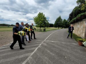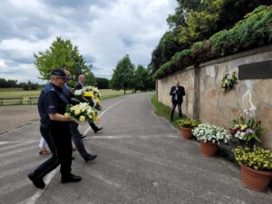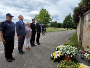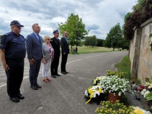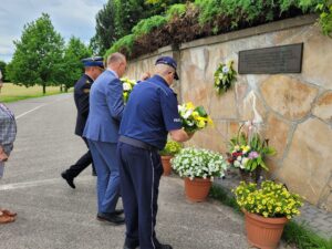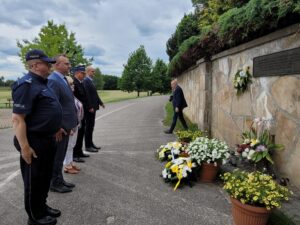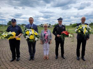 Dziś władze miasta, powiatu oraz komendanci KPP i PSP złożyli pod pomnikiem papieża okolicznościowe wiązanki.