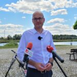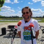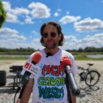 Nad brzegiem sandomierskiej Wisły Dominik Dobrowolski spotkał się z burmistrzem Sandomierza Pawłem Niedźwiedziem, który przyłączył się do jego apelu.