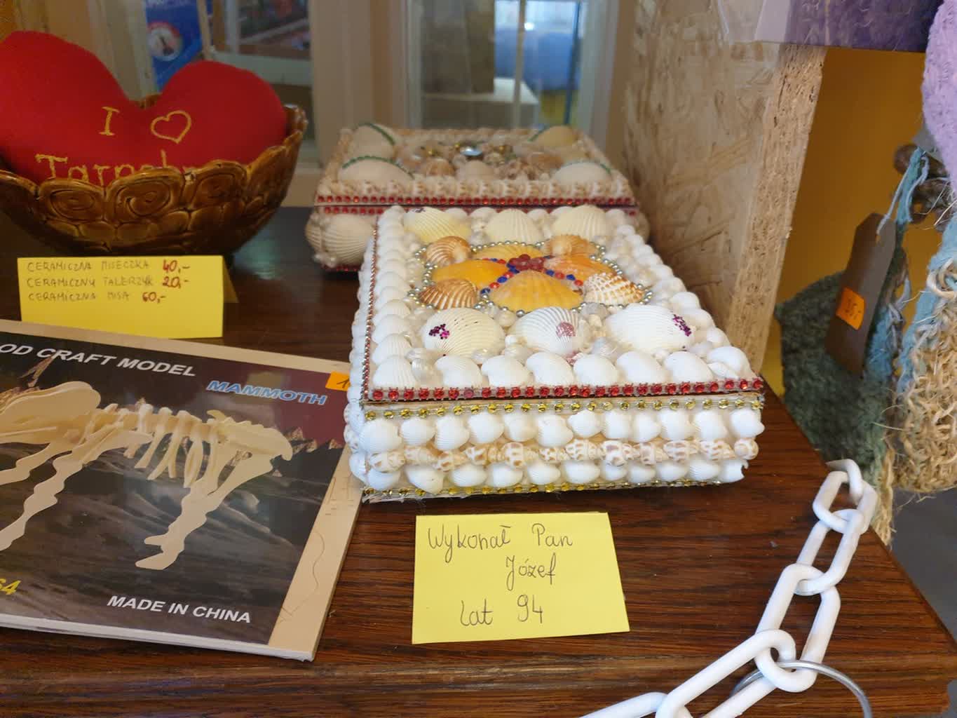 W Punkcie Informacji Turystycznej są rękodzieła. Wzrok przykuwają szkatułki oblepione muszelkami, wykonane przez blisko 100 letniego pułkownika Józefa Dąbrowskiego z Tarnobrzega. Środki z ich sprzedaży trafiają do kombatanta.