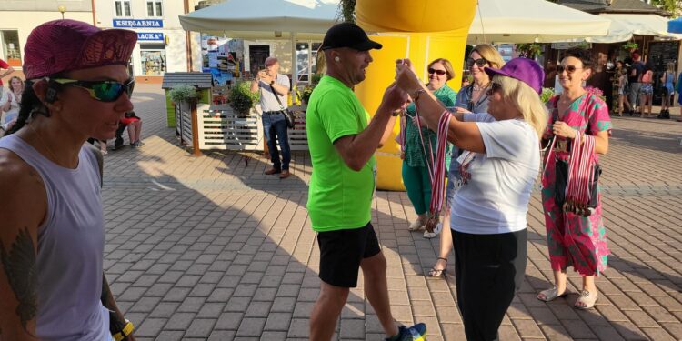Zanim biegacze wyruszyli w trasę, mieli okazję zatańczyć „belgijkę”. Pierwsze kroki pokazała im instruktor tańca Małgorzata Chmielowiec, która wcześniej poprowadziła także warsztaty dla uczestników Środowiskowego Domu Samopomocy, Domu Dziennego Pobytu oraz Domu Pomocy Społecznej.