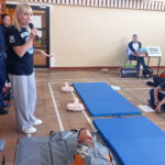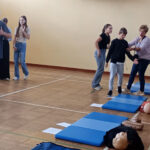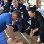 I właśnie w ten sposób uczniowie 'jedynki’ przez pół godziny, zmieniajac się co dwa cykle, walczyli o bicie serca wykonując uciśnięcia klatki piersiowej na specjalnych fantomach.
