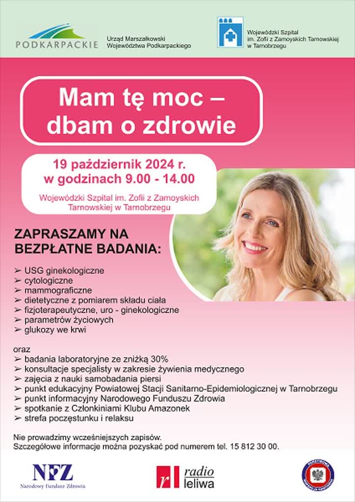 Kolejną akcję profilaktyczną organizuje Wojewódzki Szpital w Tarnobrzegu. Tym razem przedsięwzięcie skierowane jest do kobiet. Hasło wydarzenia, to „Mam tę moc – dbam o zdrowie”. Akcja odbędzie się w sobotę, 19 października, od godziny 9.00 do 14.00.