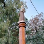 Odrestaurowany święty Antonii z dzieciątkiem stoi już na odnowionej kolumnie. Plac Dzikowski w Tarnobrzegu mieści się przed bramą wjazdową do parku dzikowskiego.