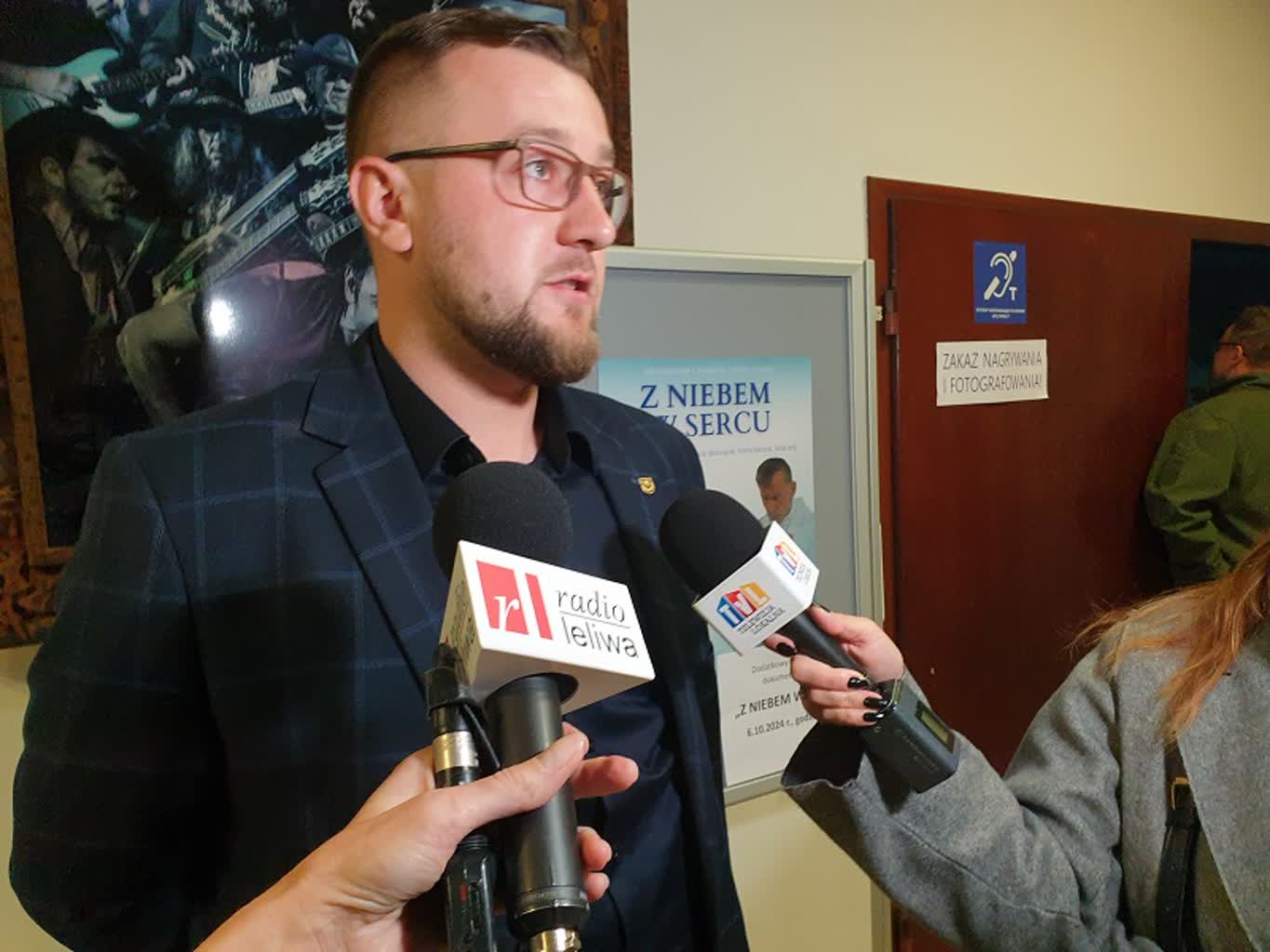 O księdzu Michale mówił przed projekcją także prezydent Tarnobrzega Łukasz Nowak.