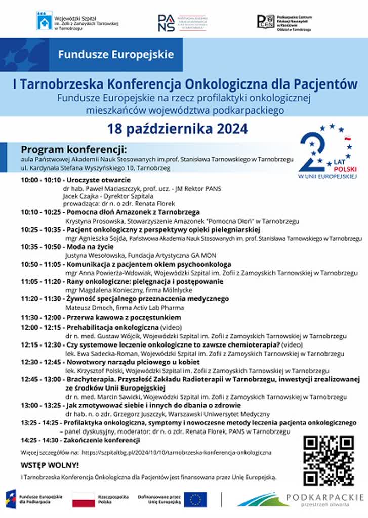 I Tarnobrzeską Konferencję Onkologiczną dla Pacjentów finansuje Unia Europejska.