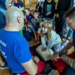 Jednym z najważniejszych punktów programu był pokaz pierwszej pomocy. Uczniowie aktywnie uczestniczyli w tej części spotkania, zadając pytania oraz sprawdzając swoje umiejętności na fantomach. Wolontariusze Enei zademonstrowali podstawowe techniki resuscytacji oraz inne umiejętności, które mogą okazać się przydatne w sytuacjach kryzysowych. Dzięki interaktywnej formie zajęć dzieci mogły lepiej przyswoić wiedzę i zdobyć pewność w reagowaniu na różne sytuacje.