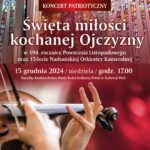 ’ŚWIĘTA MIŁOŚCI KOCHANEJ OJCZYZNY’ to tytuł koncertu patriotycznego, który odbędzie się w tę niedzielę w Bazylice Konkatedralnej w Stalowej Woli. Wystąpi Nadsańska Orkiestra Kameralna między innymi z okazji 194. rocznicy powstania listopadowego i 15-lecia swojego istnienia.