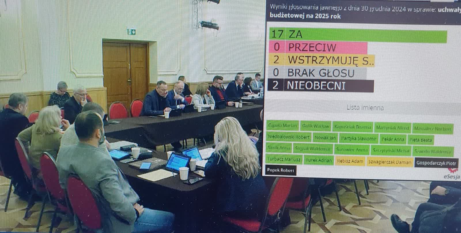 Za przyjęciem uchwały budżetowej Tarnobrzega na 2025 rok zagłosowało 17 radnych, a dwóch wstrzymało się od głosu.
