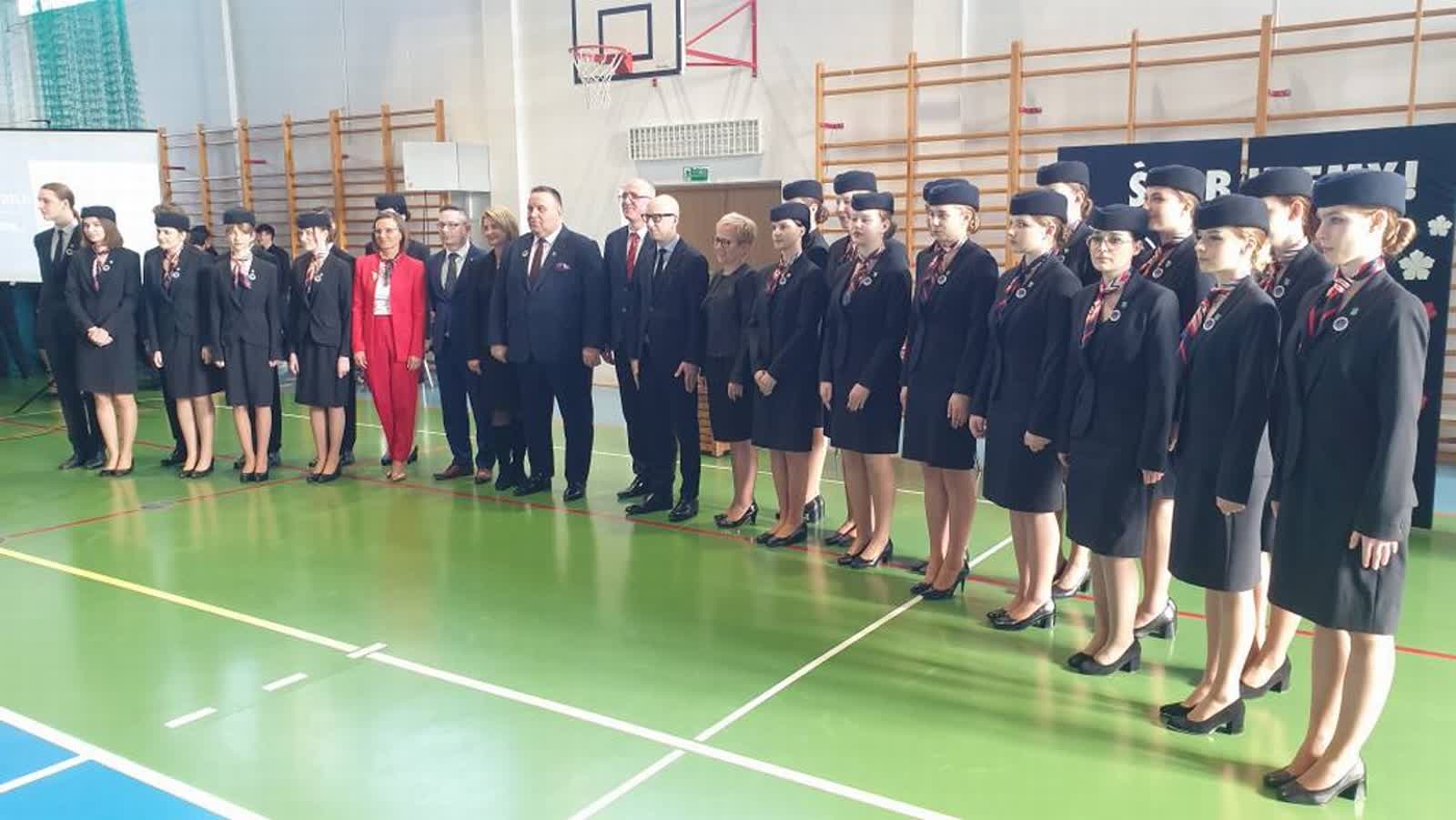 Ślubowanie złożyła młodzież z pierwszych klasy technikum obsługi pasażerów w przewozach lotniczych, morskich i lądowych Zespołu Szkół numer 1 w Tarnobrzegu.