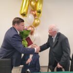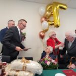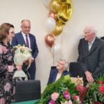 Bogdan Żukowski ma 95 lat. Jego żona jest od niego dwa lata młodsza. Uroczystość zorganizowano w remizie Ochotniczej Straży Pożarnej w Pęczynach.