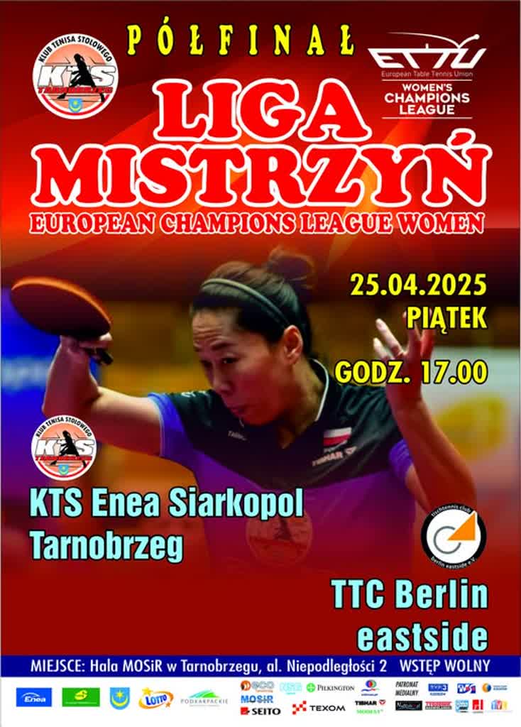 W najbliższy piątek, w hali Miejskiego Ośrodka Sportu i Rekreacji, zostanie rozegrany bardzo ważny mecz.Tenisistki stołowe KTS Enea Siarkopol Tarnobrzeg zmierzą się z drużyną Berlin Eastside w rewanżowym meczu półfinałowym Ligii Mistrzyń.