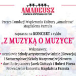 W koncercie wystąpi też duet fortepianowy Jacek Ciołczyk i Hubert Pisera. Koncert poprowadzi prezes Fundacji Amateusz Magdalena Pamuła.