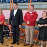 Flagę olimpiad specjalnych przy dźwiękach hymnu na maszt wciągnęli siedemnastoletni Kuba Mazurek z Łoniowa i dziewiętnastoletni Sebastian Nawrot z Kolonii Bogoria – zdobywcy srebrnego medalu w unihokeju na Światowych Zimowych Igrzyskach Olimpiad Specjalnych w Turynie wraz z trenerką Katarzyną Matuszak.