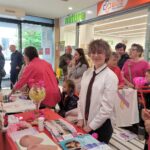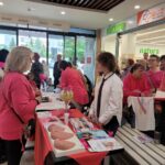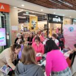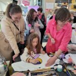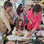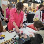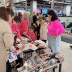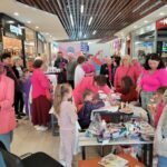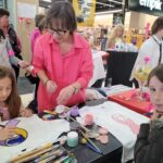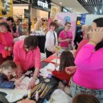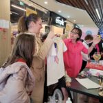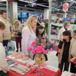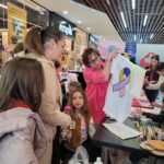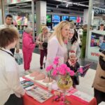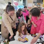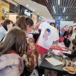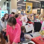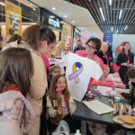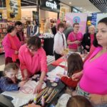 Paniom rozdawane były różowe kwiaty a dzieci kolorowały koszulki przygotowane przez projektantkę Justynę Gamoń-Wesołowską: