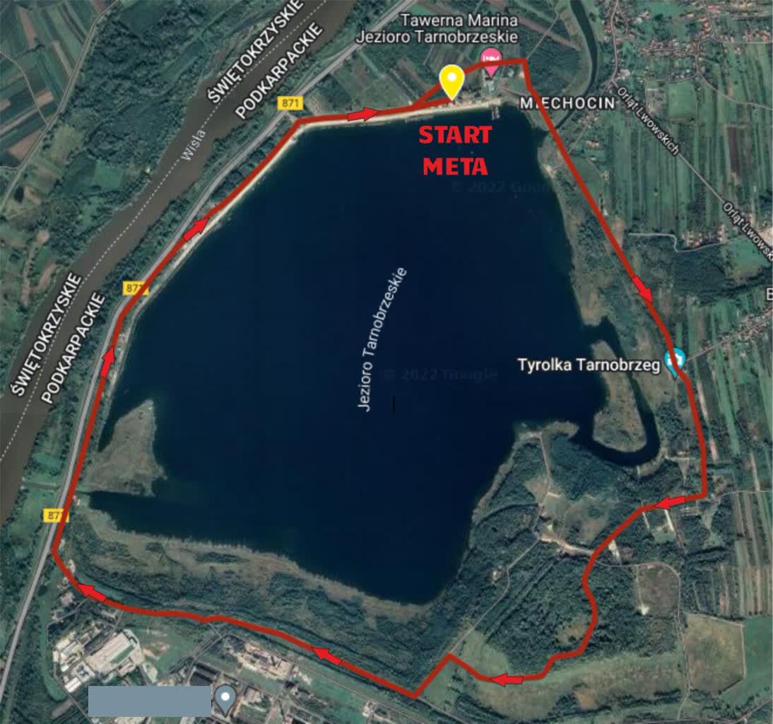 Trasa biegu przebiega po drogach wokół Jeziora Tarnobrzeskiego. Uczestników uczula się na to, że nawierzchnia, po której będą biegli nie jest jednorodna.
